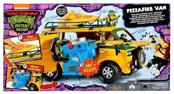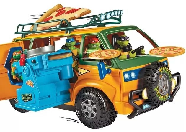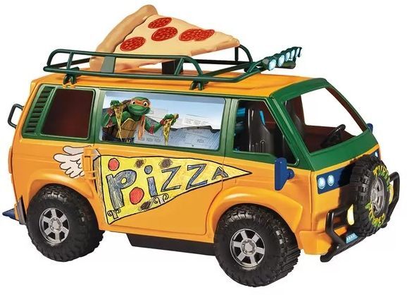 Коли Суперфлай і його поплічники-лиходії сіють хаос і намагаються захопити місто, Черепашки дістають важку зброю - фургон для доставки піци! Фургон відчиняється спереду і ззаду, у ньому є місце для всіх чотирьох Черепашок і навіть Сплінтеру. Секретна суперсила фургона захована в кнопці у вигляді шматочка піци. При її натисканні, з правого боку фургона активується піцерізка, для метання до 8 піца-дисків у ворогів! Пускову установку можна навіть регулювати, тож ви можете потрапляти в лиходіїв як здалеку, так і зблизька! Бойова машинка Фургон Доставки Піци допомагає черепашкам захищати Нью-Йорк від сил зла!
