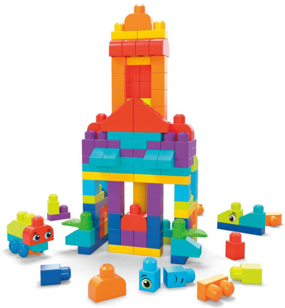Пробудіть уяву вашого малюка з Великим конструктором у мішку Mega Bloks, який складається зі 150 великих кольорових блоків та спеціальних деталей з різними елементами: очима, листям, дахом та основою з колесами. Кубики мають різну форму, розміри, кольори та ідеально підходять для маленьких рученят, а також вигадливої уяви: їх легко брати до рук і складати, розвиваючи дрібну моторику та творчі здібності. До комплекту входить зручна сумка для зберігання й транспортування конструктора. Набір підходить для дітей віком від 1 року.