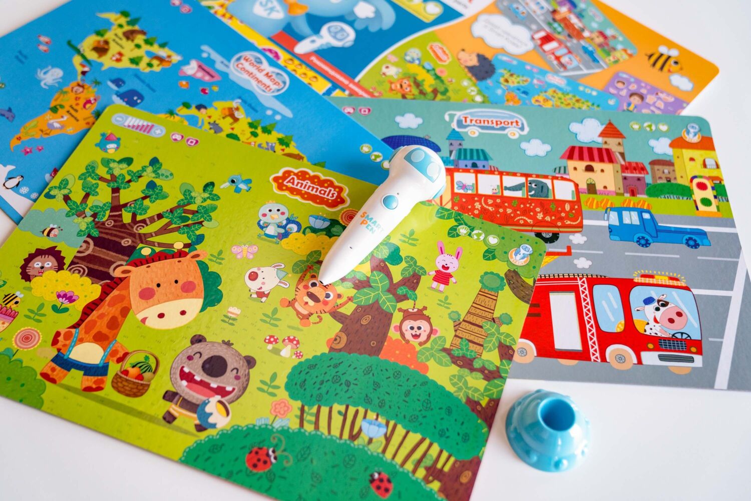 Цей набір інтерактивних бордів - чудовий спосіб зробити домашнє навчання цікавим і захопливим. Ви можете вивчати різні теми за допомогою Розумної Ручки, яка озвучує всі елементи на малюнках. Обирайте будь-який борд із п'яти варіантів: Карта світу, Частини тіла, Цифри, Транспорт або Тварини. Дізнавайтеся нові факти, слухайте діалоги трьома мовами (англійською, українською та російською) і перевіряйте свої знання в іграх. Цей набір підходить для дітей і дорослих, які хочуть розширити свій кругозір і підвищити свої навички.