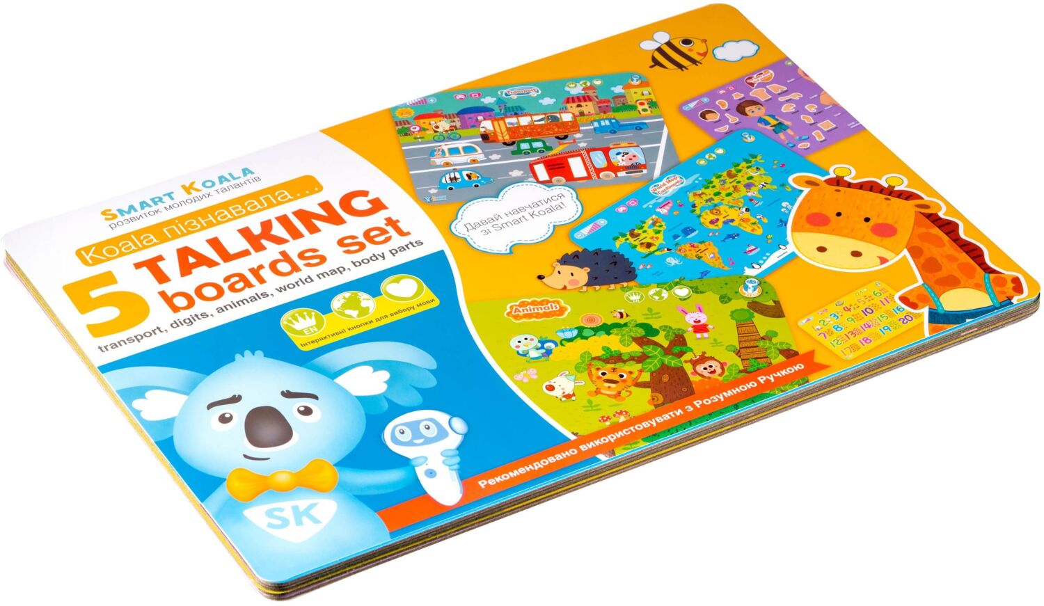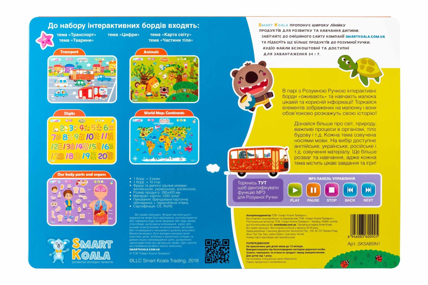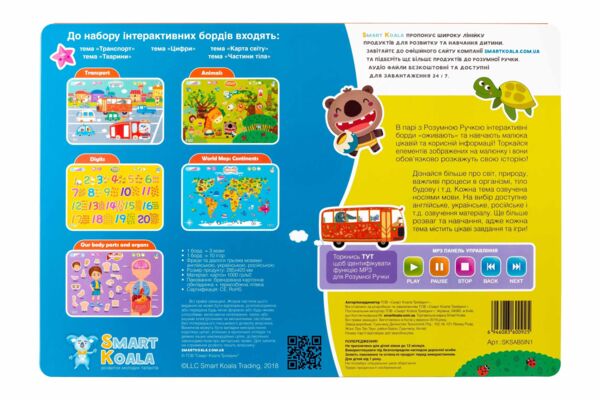 Борд інтерактивний Smart Koala - Карта світу, Частини тіла, Цифри, Транспорт, Тварини