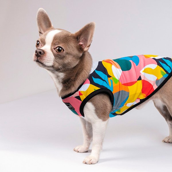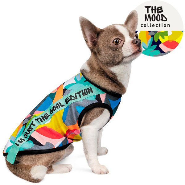 Яскраве літнє вбрання для крутих хвостиків! Це дійсно ексклюзив: унікальний малюнок, неповторний дизайн, якісна бавовняна тканина, легка та еластична. Родзинка моделі – стрічка з написом, яка гармонійно сполучається з малюнком тканини і підкреслює індивідуальність вашого улюбленця. Крій універсальний. Борцівка настільки м’яка, що її легко вдягати через голову.