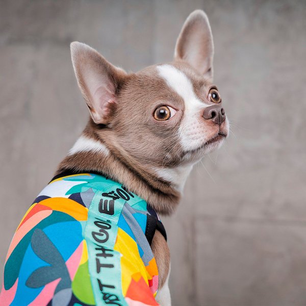 Яскраве літнє вбрання для крутих хвостиків! Це дійсно ексклюзив: унікальний малюнок, неповторний дизайн, якісна бавовняна тканина, легка та еластична. Родзинка моделі – стрічка з написом, яка гармонійно сполучається з малюнком тканини і підкреслює індивідуальність вашого улюбленця. Крій універсальний. Борцівка настільки м’яка, що її легко вдягати через голову.