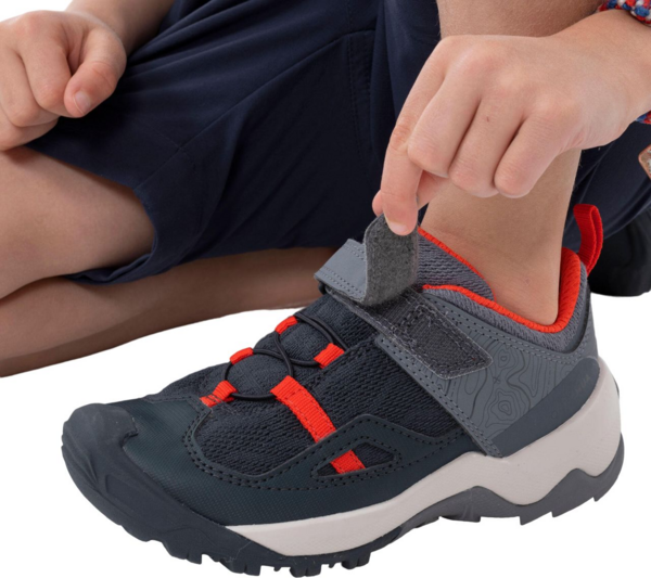 Для походів можна впевнено купувати взуття на один розмір більше, ніж звичайний розмір взуття дитини. Щоб забезпечити оптимальний комфорт під час спуску та уникнути впирання пальців ніг у передню частину взуття. Порада: впевнись, що нігті на ногах обрізані, а перед спуском перевіряй, чи липучки та/або шнурівки надійно тримають стопу, щоб пальці не зісковзували вперед.