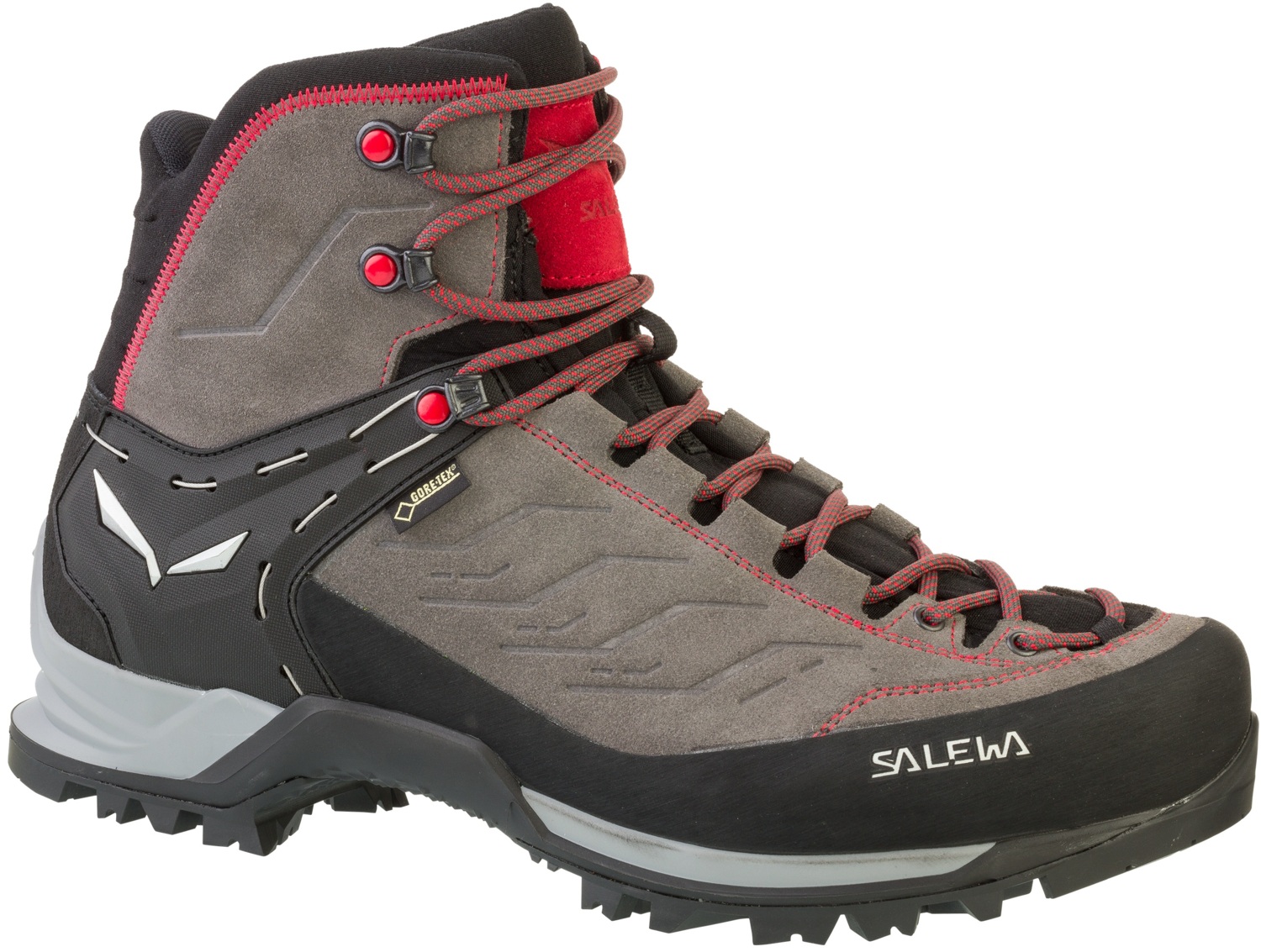 Чоловічі трекінгові черевики від відомого бренду Salewa незамінні у гірських подорожах, підошва Vibram дарує відмінне зчеплення з поверхнею, а мембрана Gore-Tex захищає від вологи й бруду. Устілка відводить вологу, завдяки чому ноги лишаються сухими. Глибока шнурівка дозволяє підігнати черевики під особливості стопи, а гумовий носок захищає від каміння і гілок.