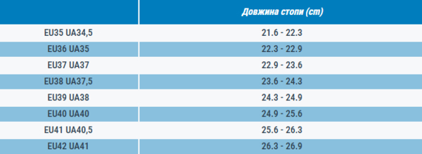 | Довжина ступні, см | 23,5 |