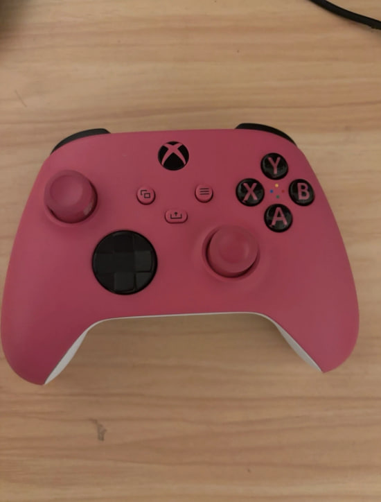 Ну такий він прям дівчачий, рожевий, але не «ляльковий», а стильний і акуратний. Коли дістала з коробки — чесно, навіть шкода було торкатись руками :) У грі поводиться чудово — кнопки чіткі, стики плавні, затримки взагалі не відчуваються