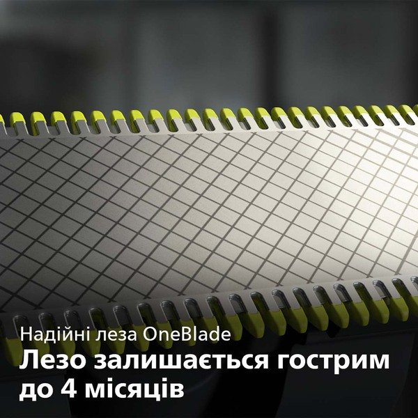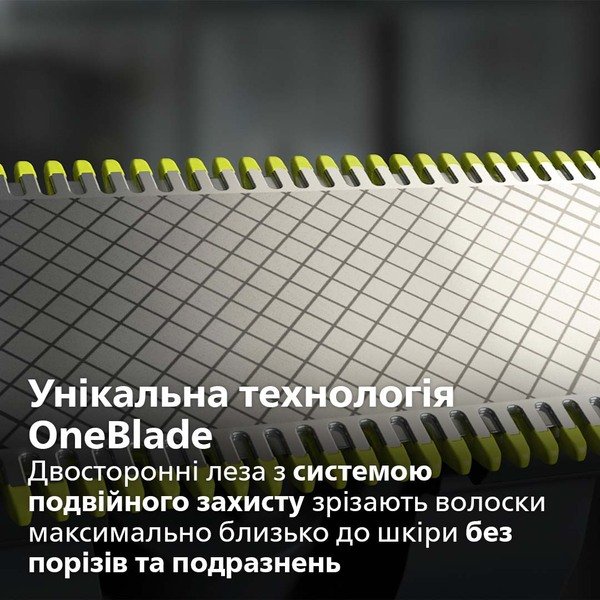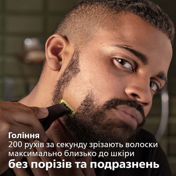 Philips OneBlade оснащений унікальною технологією для стайлінгу щетини або бороди, а також для підстригання волосся на тілі. За допомогою цього пристрою можна підстригати, створювати контури і голити волоски будь-якої довжини. Система подвійного захисту, що складається з особливого покриття і лез із закругленими кінчиками, забезпечує максимальний комфорт під час гоління. Швидко рухається різальний блок, який здійснює 200 рухів в секунду, ефективно збриває навіть довгі волоски.