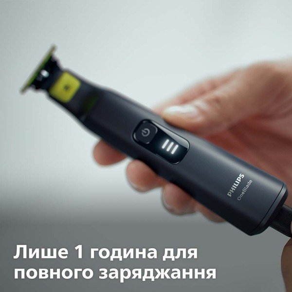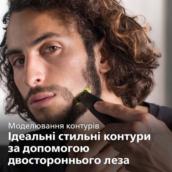 OneBlade повторює контури особи і забезпечує просте і комфортне гоління щетини на будь-яких ділянках. Двостороння лезо можна переміщати в будь-якому напрямку, тому ви легко створите чіткі контури і рівні лінії.