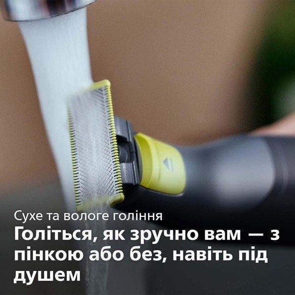 OneBlade водонепроникний, тому його дуже легко очищати – досить сполоснути водою під краном. Ви також можете вибирати будь-який спосіб гоління – на суху або на вологу шкіру, з піною або без.