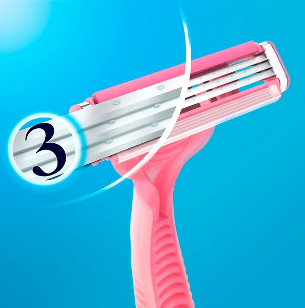 Жіноча одноразова бритва Gillette Simply Venus 3 забезпечена трьома лезами для ще більш гладкого гоління з меншою кількістю порізів і подряпин (порівняно з Simply Venus 2). Крім того, зволожувальна смужка MoistureRich забезпечує краще ковзання, а захисні мікропластини допомагають скоротити кількість порізів і подряпин.