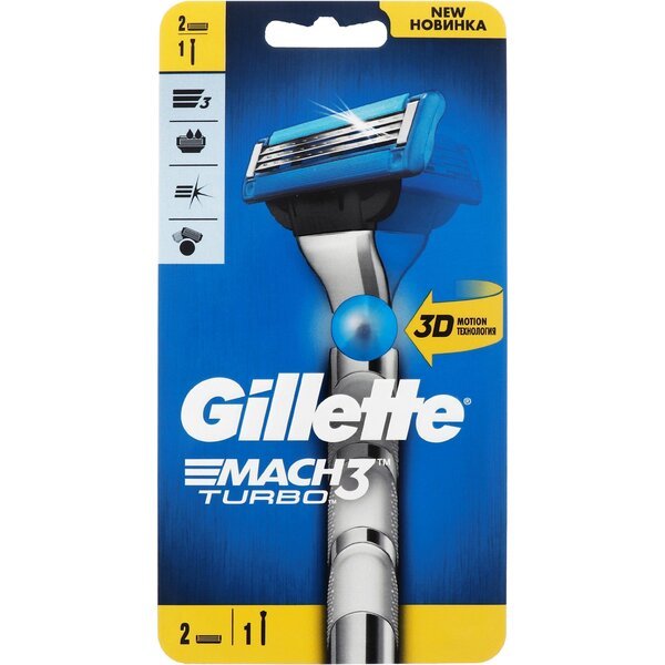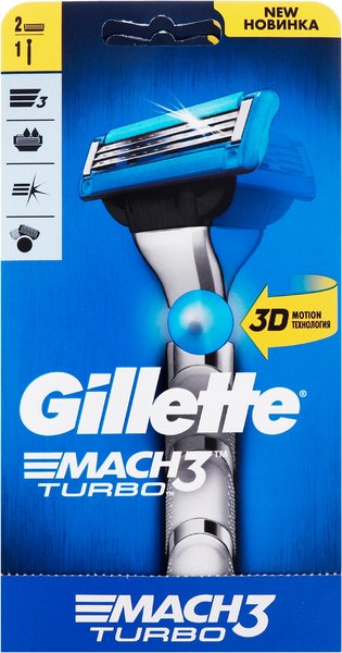 - Бритва Gillette Mach 3 Turbo 3D з 2 змінними картриджами
