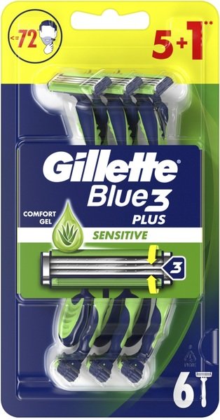 До 12 процедур делікатного гоління однією одноразовою бритвою? Таке можливо з Gillette Blue3 Sensitive, яка оснащена 3 лезами із хромовим покриттям і плаваючою голівкою, що повторює контури обличчя. Її покращена змащувальна смужка з технологією Комфортгель, що активується водою, забезпечує надзвичайно делікатне гоління. Бритва має нековзку прогумовану ручку для більшого контролю і зручності під час гоління та леза, які на 100% легше промиваються водою (порівняно з BlueII Plus).