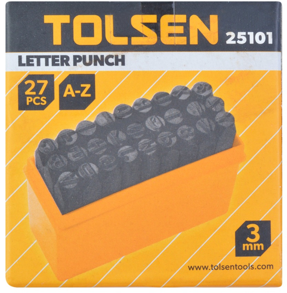 Літери для штампування Tolsen, набір 27шт, латинські літери, 3х57мм, HRC 48-52 (25101)