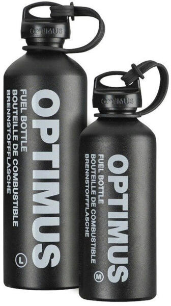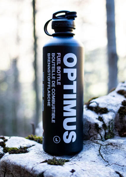 Optimus Fuel Bottle Black Edition — фляга для палива з безпечною кришкою Child Safe, яку не зможе відкрити дитина. Підходить для транспортування та використання всіх видів рідкого палива. Завдяки унікальній технології гарту, корпус пляшки Optimus є міцним та довговічним, не піддається деформаціям і має неймовірно малу вагу. Темне матове покриття мілітарі-стандарту робить контейнер непомітним у польових умовах, зокрема для приладів нічного бачення. Хомут з'єднує кришку з корпусом, щоб вона не губилася.