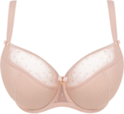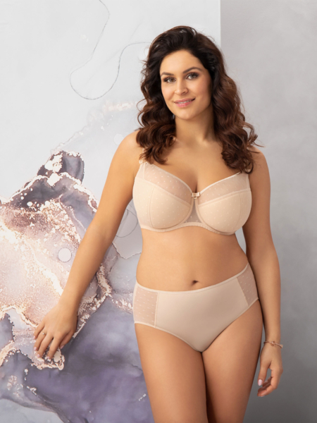 Corin - елегантна та комфортна жіноча білизна від інноваційного виробника. Бюстгальтер з напівпрозорою підкладкою модель Twiggy 12723 - витончена, елегантна версія, яка чудово піднімає бюст. Весь бюстгальтер виготовлений з фатину в крапку, що додає моделі легкості, а також його не видно під одягом. Чашку укріплено тонким поролоном - для кращого регулювання та підйому грудей. Бретелі незнімні, регульовані, з підігнаною за розміром шириною - чим більше чашка, тим трохи ширше бретелі.