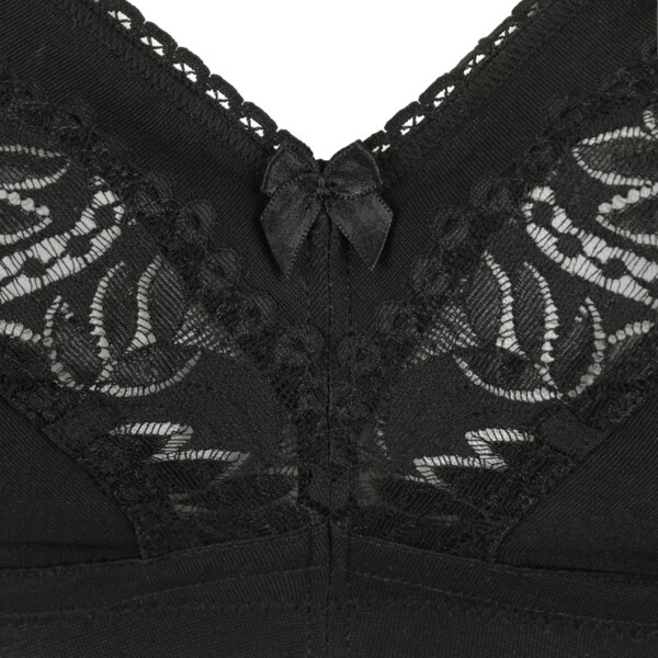 Rosme - елегантна та зручна корсетна білизна виробництва Латвії. Класичний бюстгальтер без кісточок створений для максимального комфорту. М'яка чашка забезпечує комфорт і свободу рухів. Чашка складається з трьох частин: нижня частина чашки на бавовняній підкладці, бічна коригувальна деталь, що переходить у широку бретельку, забезпечують додаткову підтримку.