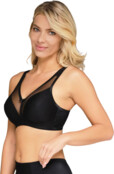 Тонкий бюстгальтер без кісточок із м'якими чашками забезпечує зручну посадку та максимальну підтримку для великих розмірів і повних жінок. Родзинка колекції — напівпрозора сіточка, яка вигідно підкреслює груди. Бретелі підбиті поролоном, що забезпечує додатковий комфорт при щоденному носінні. Бюстгальтер на широкій еластичній стрічці, що забезпечує стабільну підтримку грудей і впевненість у собі.