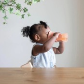 - Форма чашки дозволяє напою стікати до краю, якщо чашку тримати горизонтально. Це гарантує, що вашій дитині не доведеться згинати шию назад.