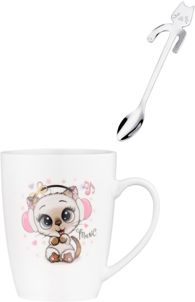 Чашка з ложкою Ardesto Music, 320мл, білий (AR3041BS)