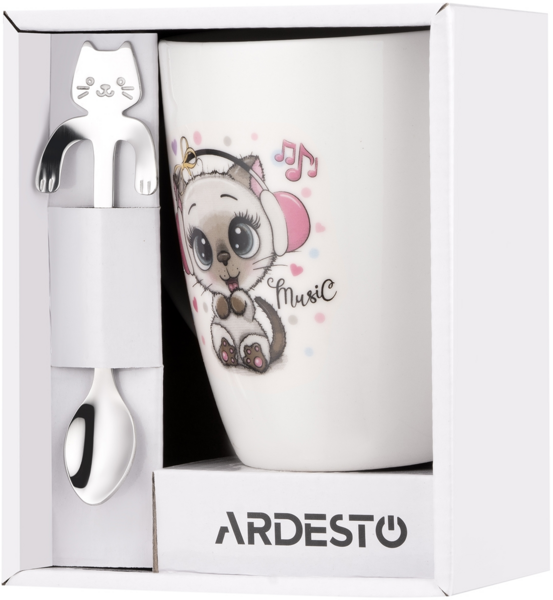 - Чашка з ложкою Ardesto Music, 320мл, білий (AR3041BS)