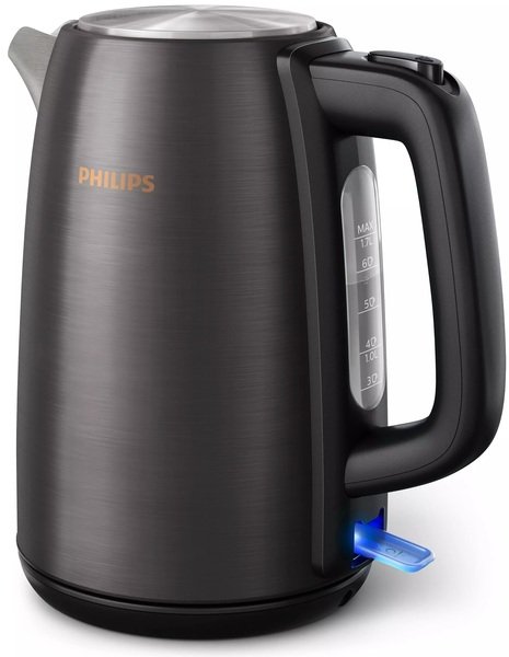 Отличного качества чайник от филипса. Корпус сделан из метала, ручка из пластика. Вид у него приятный, и отлично что пятен на корпусе не остается при использовании. По характеристикам тут все просто, мощность 2,2 кВт, в целом хватает, что бы быстро нагреть воду. Вращается на 360 градусов и при этом нагревательный элемент скрытый. Шнур можно спрятать и не включится без воды.
