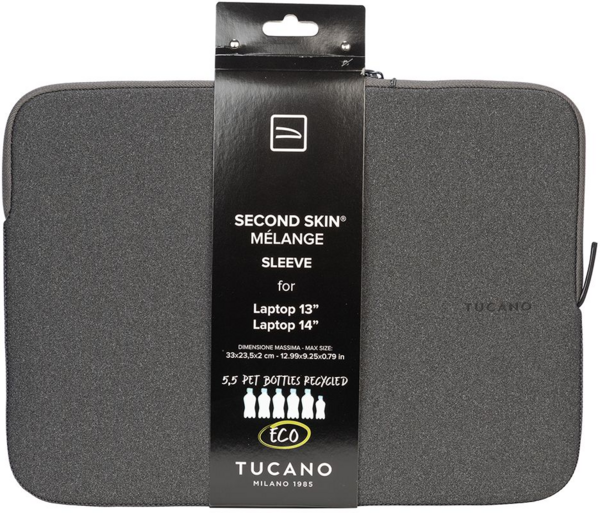 Еластичний чохол, виготовлений з матеріалу, частково зробленого з переробленого пластику з ефектом меланжу, для ноутбуків 13" та 14". Оснащений системою Anti-Slip System і двома кутовими клапанами, призначеними для фіксації пристрою, Second Skin mélange також щільно прилягає завдяки плоским швам. Це гарантує тонший профіль та відмінний захист. Внутрішня частина виготовлена з м’якого матеріалу, стійкого до подряпин.