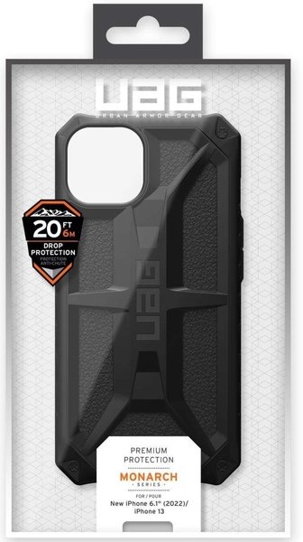 Рекламований як типовий всюдихідний міцний захисний чохол, Monarch оснащений 5-рівневим захистом преміумкласу: ударостійке ядро, безпомилково впізнаваний каркас броні, шари шкіри вищої якості (або кевлар, вуглецеве волокно), полікарбонат протирізальна пластина. ДНК класичної міської броні створено для того, щоб йти далі.