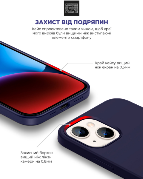 Чохол виготовлений з використанням преміальних матеріалів, таких як Liquid silicone з Soft Touch покриттям. Це надає чохлу м'якість і робить його приємним на дотик, що забезпечує комфортне тримання вашого iPhone в руці.