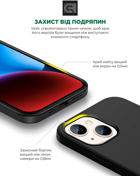 Чохол виготовлений з використанням преміальних матеріалів, таких як Liquid silicone з Soft Touch покриттям. Це надає чохлу м'якість і робить його приємним на дотик, що забезпечує комфортне тримання вашого iPhone в руці.