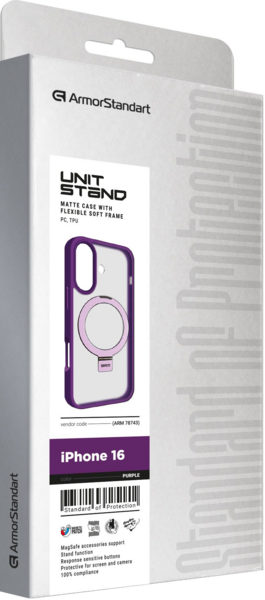 - Чохол ArmorStandart Unit Stand для Apple iPhone 16 Purple (ARM78743)