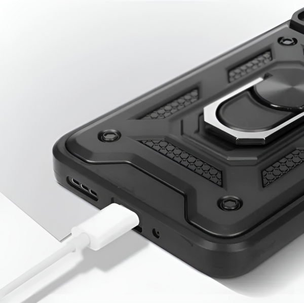 Протиударний чохол Military BeCover надійно захистить від будь-яких екстремальних та форс-мажорних ситуацій. Гнучка силіконова панель має жорсткий металізований корпус та кільце-підставку для пальця. Чохол здатний витримати навіть сильні удари та подряпини. Вбудований регульований кронштейн: кільце, що обертається на 360°, знімається або висувається як підставка, щоб звільнити руки. Це дасть вам змогу використовувати кільце як підставку для гаджета, під час перегляду відео, роблячи фото або користуючись інтернетом. Чохол приємний на дотик, має протиковзне покриття, яке не залишає відбитків пальців. М'який тонкий матеріал не пошкоджує мобільний телефон і завдяки ударостійким піднятим бортам, захищає камеру та екран. Конструкція сумісна з автомобільним магнітним тримачем і може вільно обертатися (не сумісна з бездротовою зарядкою).