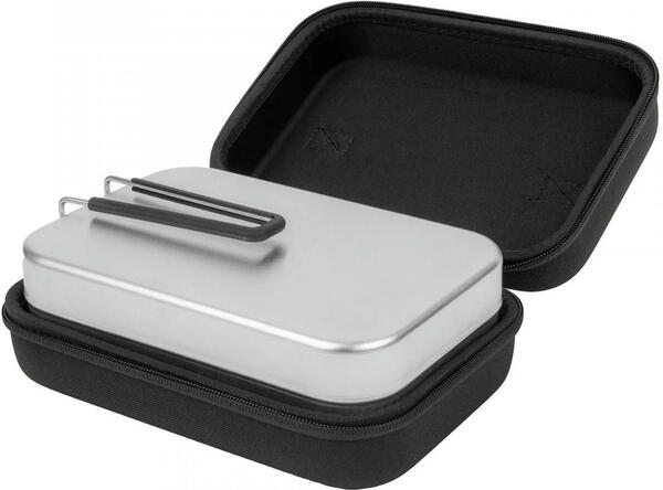 Елегантний і надійний чохол із жорсткими стінками для алюмінієвого контейнера Trangia Mess Tin. Захищає посуд від пошкоджень і подряпин під час транспортування та зберігання. Каркас з EVA-піни із зовнішнього боку затягнутий зносостійким поліестером щільністю 600D. Поліуретанове просочення захищає тканину від намокання. На внутрішньому боці - м'який поліестер Poly Brush Tricot. Кейс застібається на блискавку. Виходить у двох розмірах: для великого ланчбокса Trangia Mess Tin Large 1.3 л і маленького Trangia Mess Tin Small 0.75 л.