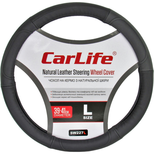 - Чохол на кермо CarLife шкіряний розмір L 39-41см (SW227L)