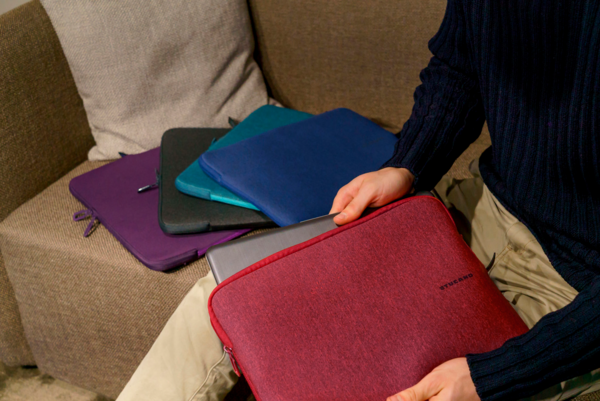 Еластичний чохол, зроблений з матеріалу, частково виготовленого з переробленого пластику з ефектом меланжу, для ноутбука 15.6" та MacBook Pro 16. Оснащений антиковзаючою системою та двома кутовими клапанами, призначеними для захисту пристрою, Second Skin mélange також щільно прилягає до тіла завдяки плоским швам. Це гарантує тонший профіль і відмінний захист. Внутрішня частина виконана з м'якого матеріалу, що не дряпається.