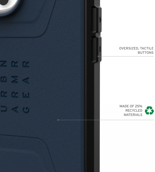 Створений для тих, хто цінує стиль, міцність і функціональність. Тонший, ніж у попередньому поколінні, чохол легко інтегрується з аксесуарами MagSafe для зручного заряджання. Завдяки технології потрійного лиття під тиском і шестигранним амортизаційним сердечником, чехол Civilian для iPhone 16 забезпечує захист від падінь на висоті 20 футів (6 метрів), гарантуючи, що ваш телефон буде в безпеці від падінь і щоденного використання. Рельєфний край захищає екран від подряпин і ударів, а протиковзка ручка надійно утримує пристрій у руці. Насолоджуйтеся чітким, чуйним натисканням великих тактильних кнопок для легкого керування на ходу.