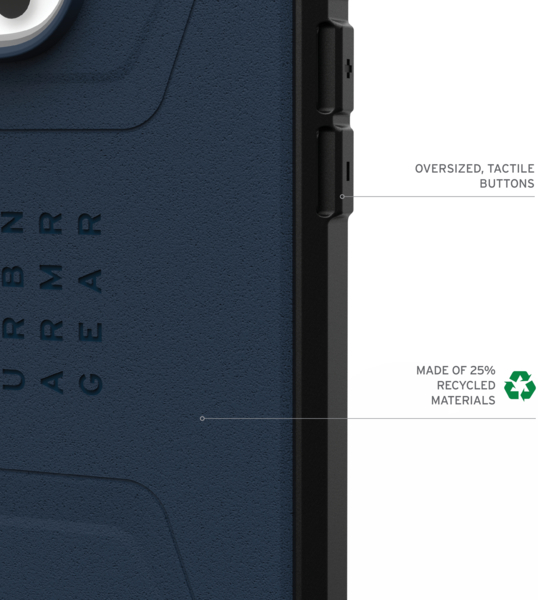 Створений для тих, хто цінує стиль, міцність і функціональність. Тонший, ніж у попередньому поколінні, чохол легко інтегрується з аксесуарами MagSafe для зручного заряджання. Завдяки технології потрійного лиття під тиском і шестигранним амортизаційним сердечником, чехол Civilian для iPhone 16 Pro Max забезпечує захист від падінь на висоті 20 футів (6 метрів), гарантуючи, що ваш телефон буде в безпеці від падінь і щоденного використання. Рельєфний край захищає екран від подряпин і ударів, а протиковзка ручка надійно утримує пристрій у руці. Насолоджуйтеся чітким, чуйним натисканням великих тактильних кнопок для легкого керування на ходу.