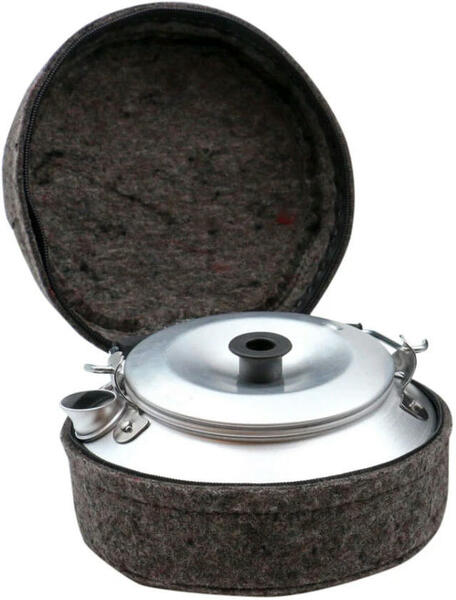 Trangia Wool Сase Kettle - повстяний чохол для похідного чайника Trangia Kettle. Виконує дві функції: під час транспортування захищає зовнішні стінки посуду від пошкоджень, а після кип'ятіння води слугує термочохлом, довше зберігаючи воду гарячою.