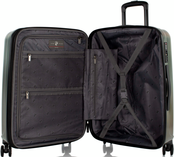 Валіза Heys Astro дійсно неординарна завдяки своєму металевому кольору і поверхні, що переливається. Інноваційний, стильний дизайн привертає увагу та задає настрій кожній вашій подорожі. Валіза виготовлена з легкого полікарбонатного композиту чим забезпечено міцність, легкість і довговічність, щоб надати вашим речам найкращий захист зі стилем. Подвійні колеса-спінери забезпечують легке переміщення різними поверхнями. Основне відділення має розділювач на блискавці з двома сітчастими кишенями та два еластичні ремені для фіксації речей, що закріплюються застібкою.