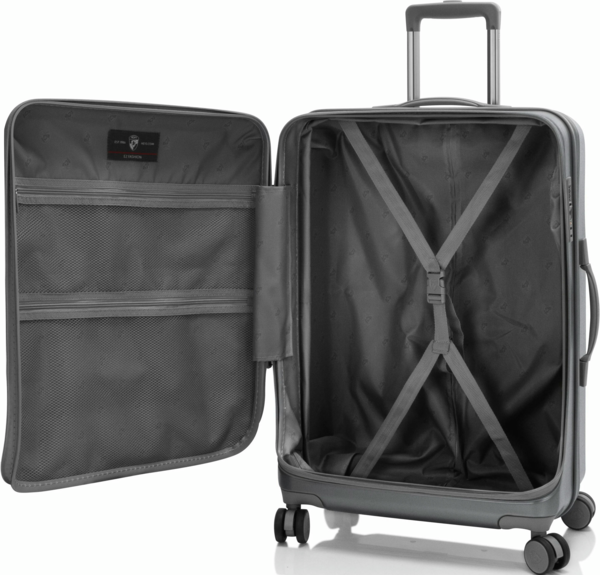 Валіза Heys EZ Fashion на відміну від традиційної конструкції з розділенням 50/50, яка зустрічається в більшості жорстких валіз, відрізняється системою відкривання спереду. Це дає можливість пакування речей вглибину, використовуючи передній клапан. Виготовлена з полікарбонатного композиту: легкого, міцного та ударостійкого матеріалу. Зовнішня поверхня має легке тиснення, що запобігає появі подряпин й потертостей. Внутрішня частина повністю на підкладці. Основне відділення має два еластичні ремені для фіксації речей, що закріплюються застібкою. Також є дві сітчасті кишені для зберігання необхідних дрібниць. Є можливість збільшити корисний об`єм валізи до 20% завдяки наявності розширювального клапана.