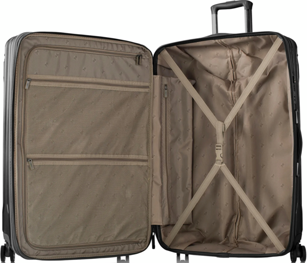 Основне відділення має розділювач на блискавці з двома сітчастими кишенями та два еластичні ремені для фіксації речей, що закріплюються застібкою. Валіза обладнана фірмовим кодовим замком з функцією митного огляду TSA та чотирма спареними повно поворотними колесами з можливістю незалежного розвороту кожного колеса на 360°. Системою передбачено рівномірний перерозподіл навантаження на кожне колесо, що своєю чергою сприяє плавному коченню та маневровості валізи. Є можливість збільшити корисний об`єм валізи до 20% завдяки наявності розширювального клапана.