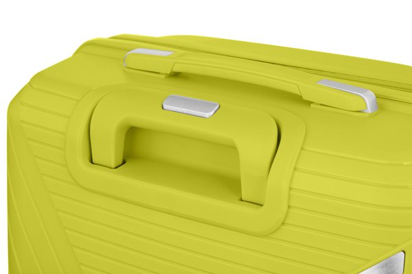 - Верхня та бічна ручки з каучуковими вставками для комфортного перенесення/підняття валізи.
