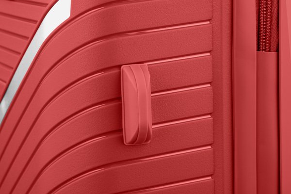 - Верхня та бічна ручки з каучуковими вставками для комфортного перенесення/підняття валізи.