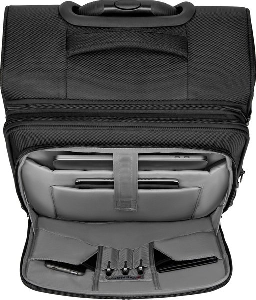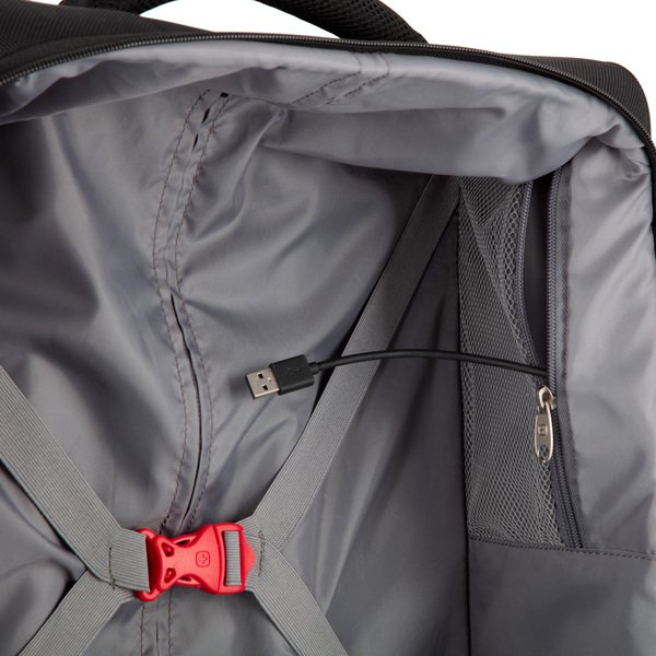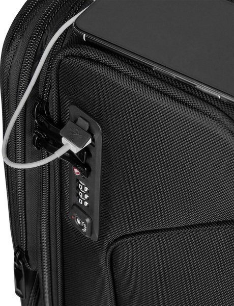 - Переднє відділення виконує роль мобільного офісу з 16-дюймовим відділенням для ноутбука і 12-дюймовою кишенею для планшета