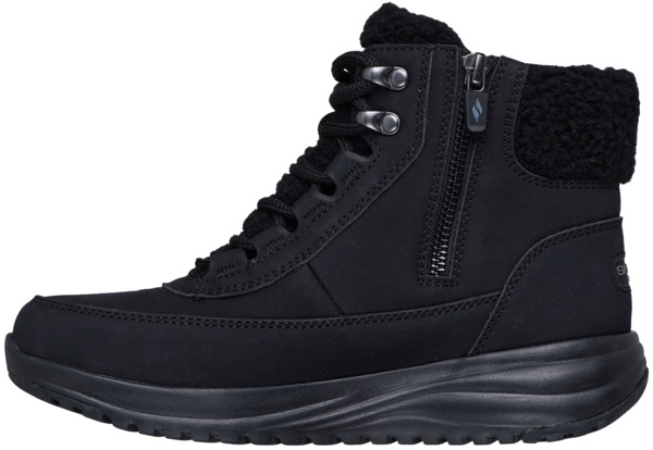 Черевики Skechers On-The-Go Stellar — стильні чорні черевики, які поєднують урбаністичний вигляд із функціональністю для міжсезоння та м’яких зим. Вони підійдуть як до деніму, так і до темних штанів чи светрів, створюючи збалансований образ із акцентом на комфорт і практичність.