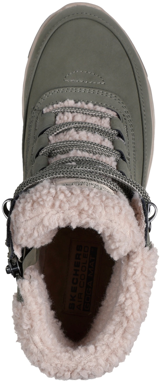 Черевики Skechers On-The-Go Stellar — стильні оливкові черевики, які поєднують урбаністичний вигляд із функціональністю для міжсезоння та м’яких зим. Їхній дизайн натхненний природою: зелено-оливковий тон підкреслює спортивно-природний характер. Вони підійдуть як до деніму, так і до темних штанів чи светрів, створюючи збалансований образ із акцентом на комфорт і практичність.
