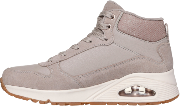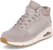 Вуличний стиль поєднується із затишним комфортом у Skechers Street Uno - Stacre Shine. Ці модні черевики середньої довжини зі шнурівкою мають верх із замші та дюралюмінію з блискучим сітчастим коміром, м’яку устілку Skechers Air-Cooled Memory Foam та видиму проміжну підошву Skech-Air з подушкою безпеки. Проміжні підошви Skech-Air наповнені повітрям, створюють відчуття ходьби по хмарах, куди б ви не пішли.