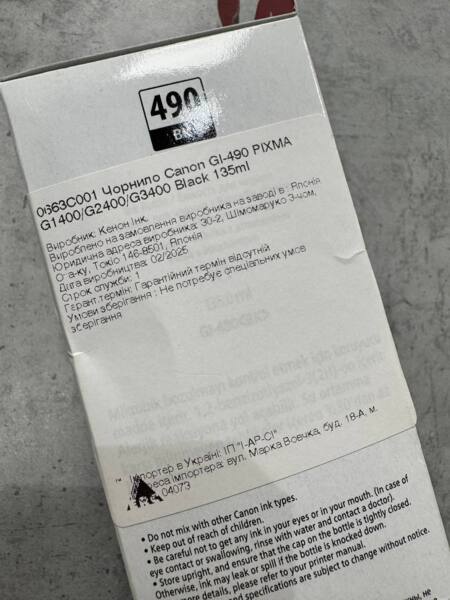 - Чорнило Canon GI-490 PIXMA G1400/G2400/G3400 Black 135ml (0663C001) Уценка