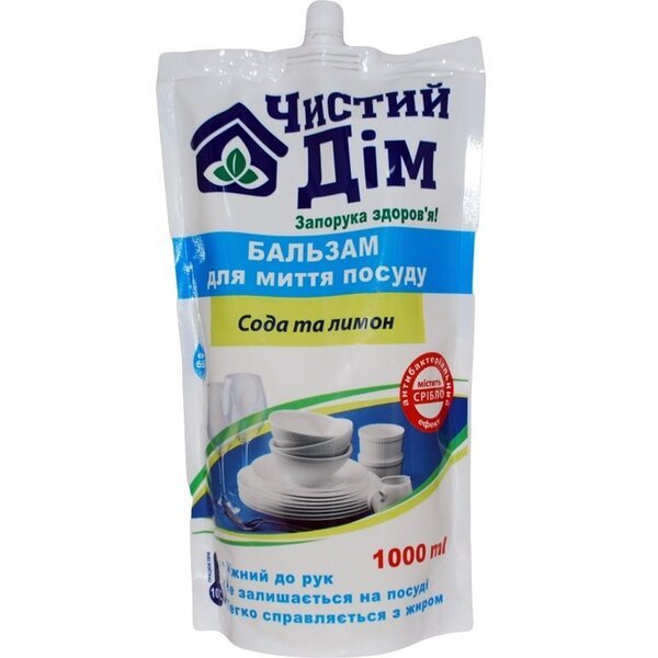 - Засіб для миття посуду Чистий Дім Сода і лимон дой-пак 1000 мл