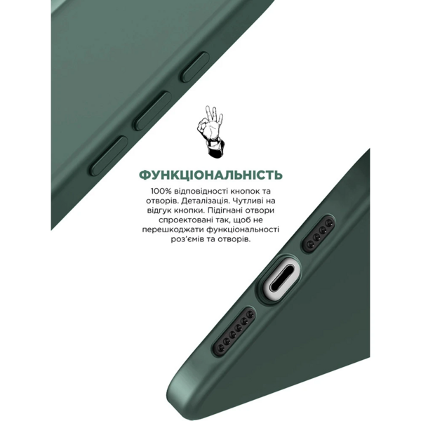 Чохол виготовлений з використанням преміальних матеріалів, таких як Liquid silicone з Soft Touch покриттям. Це надає чохлу м'якість і приємний на дотик вигляд, що забезпечує комфортне тримання вашого iPhone в руці.