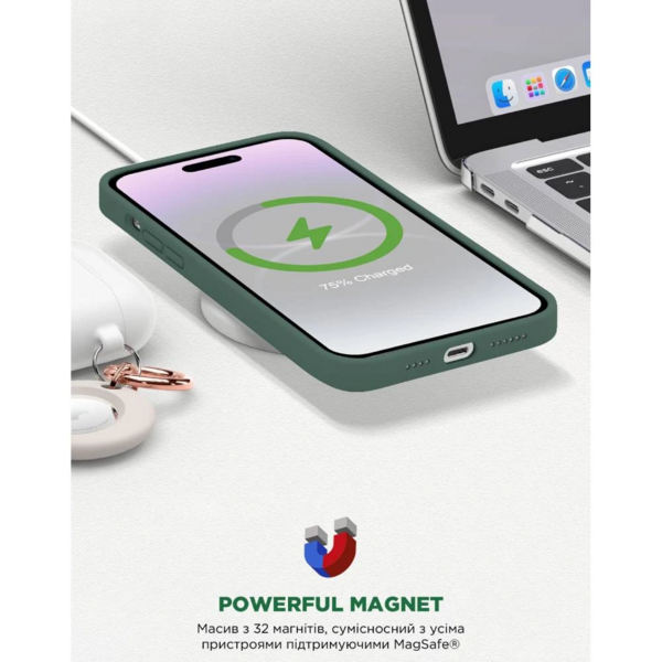 Інтегрована функція MagSafe дозволяє вам використовувати різноманітні аксесуари, які підтримують цю технологію, без необхідності використовувати додаткові кріплення. Це робить чохол ще більш універсальним і зручним у використанні.